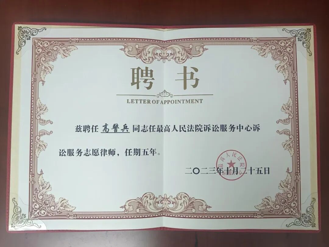 经中国法学会和中华全国律师协会推荐,恒都律师事务所高警兵、席超、张坤、焦晓丽等多位律师获聘最高人民法院诉讼服务中心志愿律师,任期五年。其中,席超、张坤、焦晓丽律师参加了本次培训并获颁聘书。