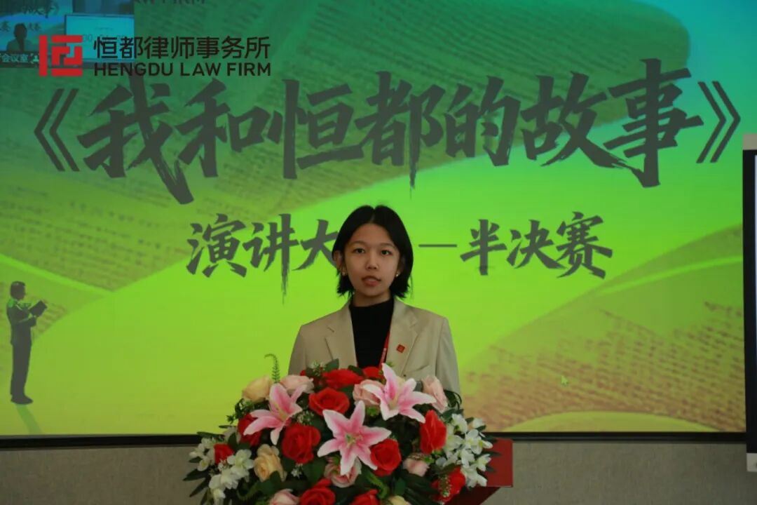 本次半决赛紧紧围绕“我与恒都的故事”这一主题,旨在挖掘并展现恒都人与恒都之间深厚的情感联结。演讲台上,参赛者们不再是平日里严谨理性的法律人,而是化身为温情脉脉的讲述者。
