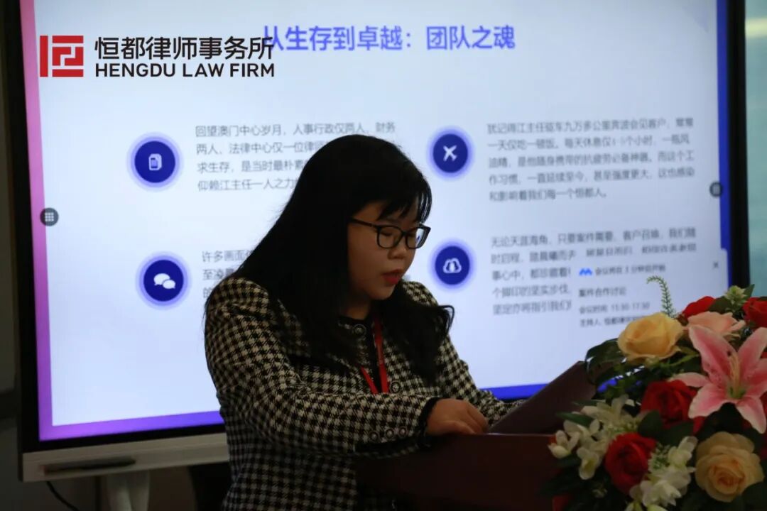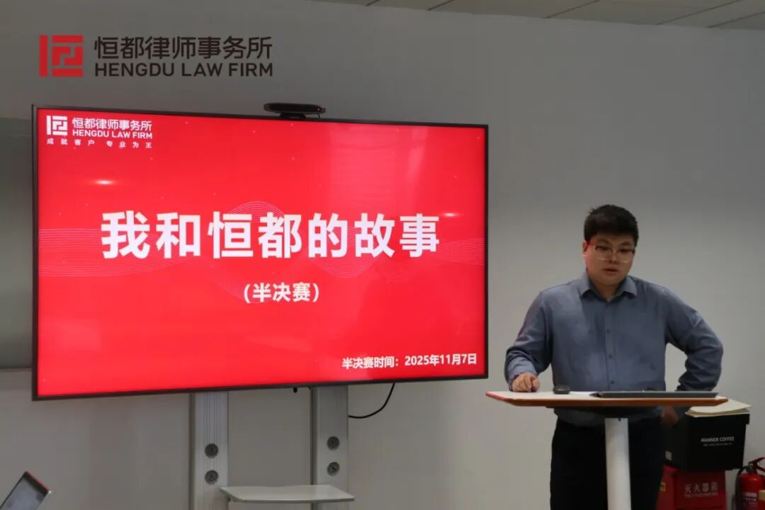 一个个真实、鲜活的故事,饱含深情,引发了律所同仁的强烈共鸣。现场时而因幽默的趣事爆发出阵阵笑声,时而又因感人至深的坚守与情谊而陷入静默与感动。这不仅是一场演讲竞技,更是一次恒都文化与精神的集中洗礼,生动诠释了恒都“家”文化的温暖与凝聚力。